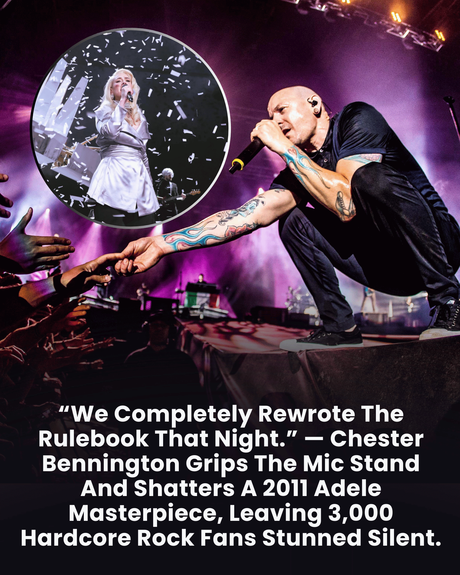 Instead of launching into another Linkin Park classic, the opening notes of Adele's massive hit "Rolling in the Deep" echoed through the venue. At the time, Adele's song dominated global charts and was widely associated with powerful pop vocals rather than alternative rock. For a crowd of devoted rock fans expecting distortion and headbanging, the choice seemed almost surreal.